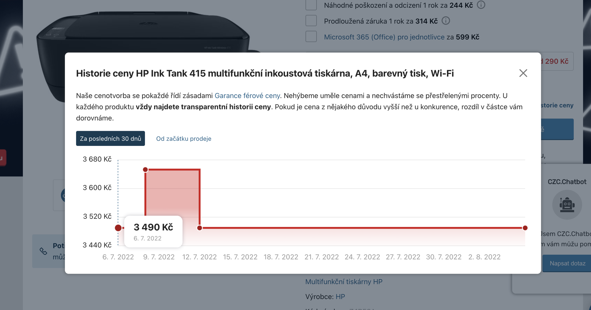 Se zvyšující se inflací a rostoucími cenami se stává na e-shopech v roce 2022 velmi populární vizualizace cen. Díky této vychytávce mohou provozovatelé online obchodů ukázat, jak se (ne)měnila cena jejich produktů v čase. Tuto ukázku vizualizace jsme přebrali z e-shopu czc.cz.