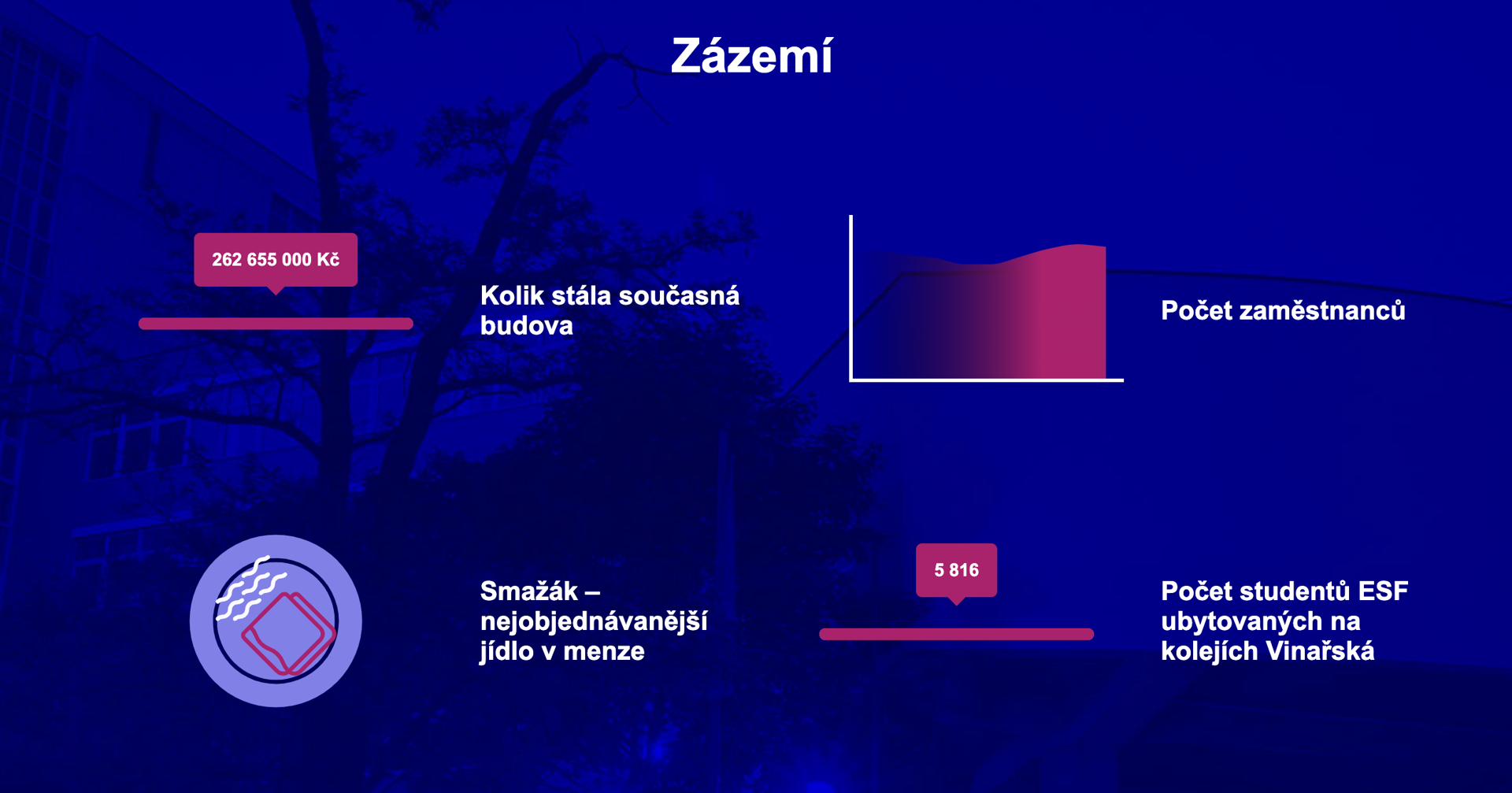Informace můžete předat i vtipně! Rafinovanost do sdělení zakomponovala Ekonomicko-správní fakulta Masarykovy univerzity v Brně. Té jsme k výročí 30 let od založení vytvářeli prezentační web, na kterém nesměly chybět i nějaké ty zajímavosti – třeba jaké je nejoblíbenější jídlo v menze nebo jaké je národnostní rozložení mezi studenty. Zde jsme využili dalšího typu grafu, tzv. progress bar – v praxi vypadá jako linka nebo kruh, který se postupně doplňuje do určitého procenta.
