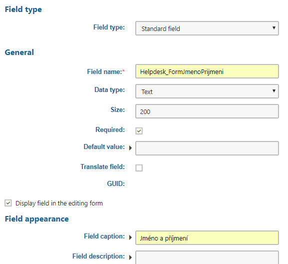 Kentico: Jak přidat a upravit pole ve formuláři