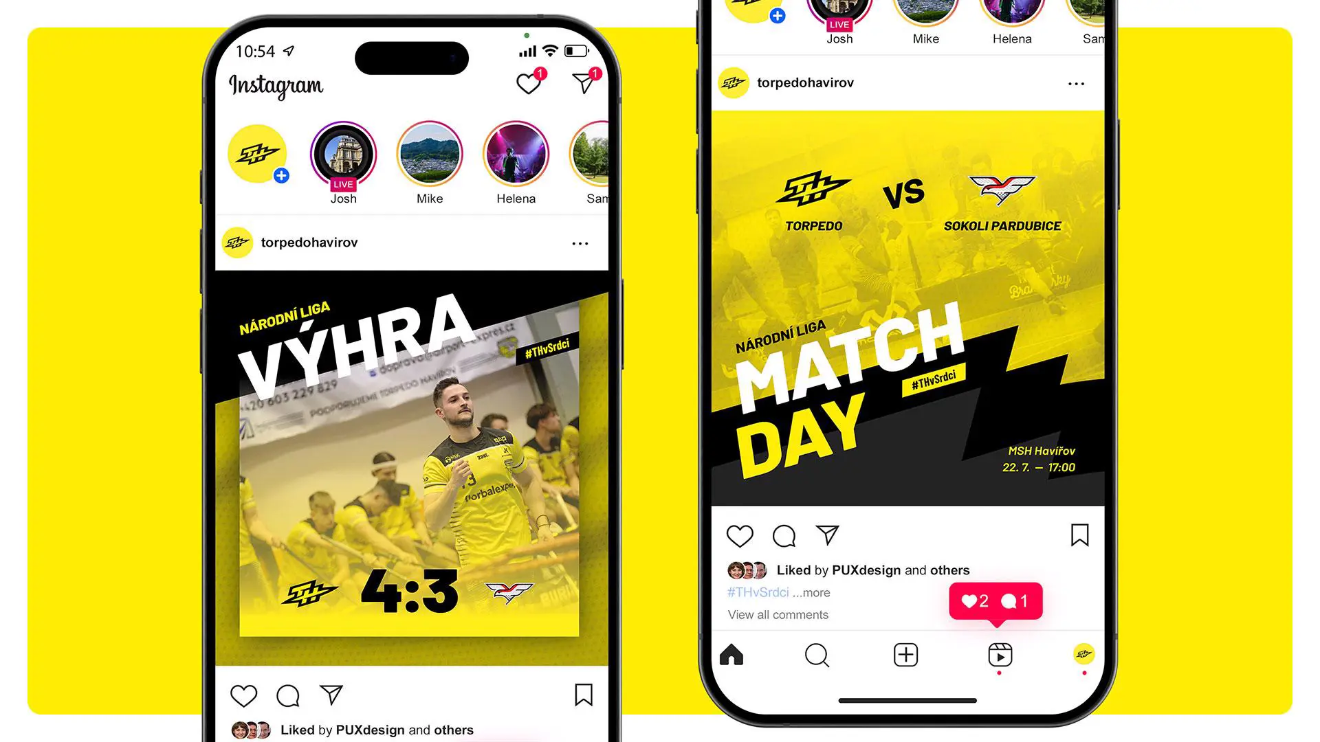 Velká část komunikace sportovních týmů se dnes odehrává v online prostředí. Zvládli jste sjednotit tištěné materiály? Bezva. Teď se pusťte do sladění grafiky na sociálních sítích a u webových bannerů. Pomůže, když si necháte od grafika vytvořit jednoduché šablony pro příspěvky nebo reels, do kterých vždy jen dosadíte aktuální informace – například pozvánku na zápas nebo výsledek utkání.