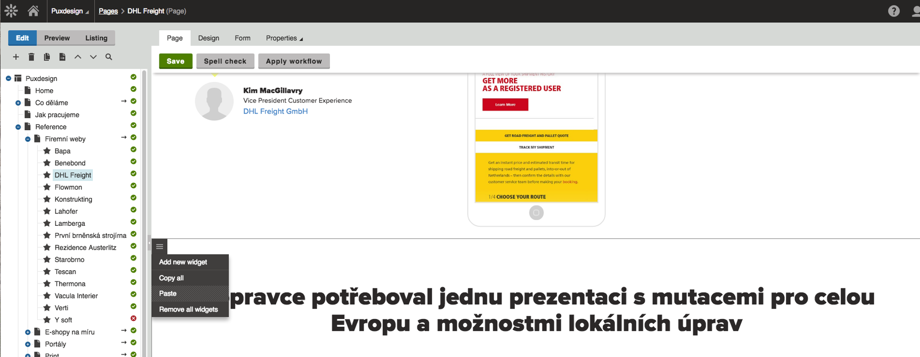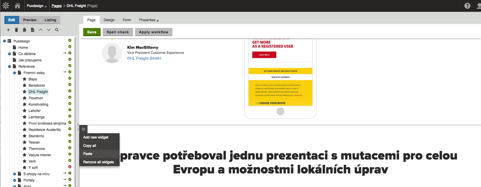 Díky 9 widgetům můžeme na webu tvořit úplně nové stránky