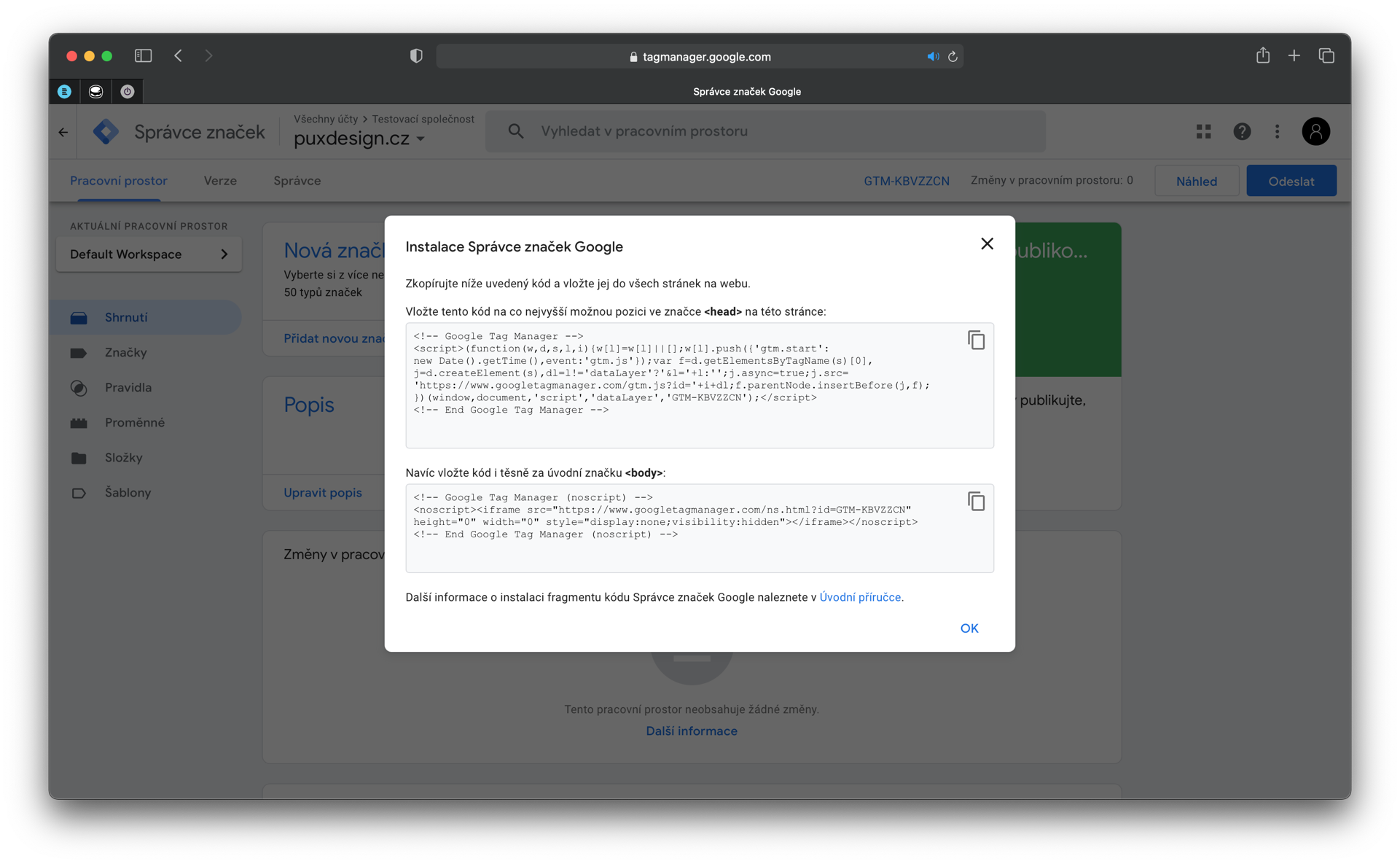 Nyní jste nainstalovali Google Analytics do Google Tag Manager.