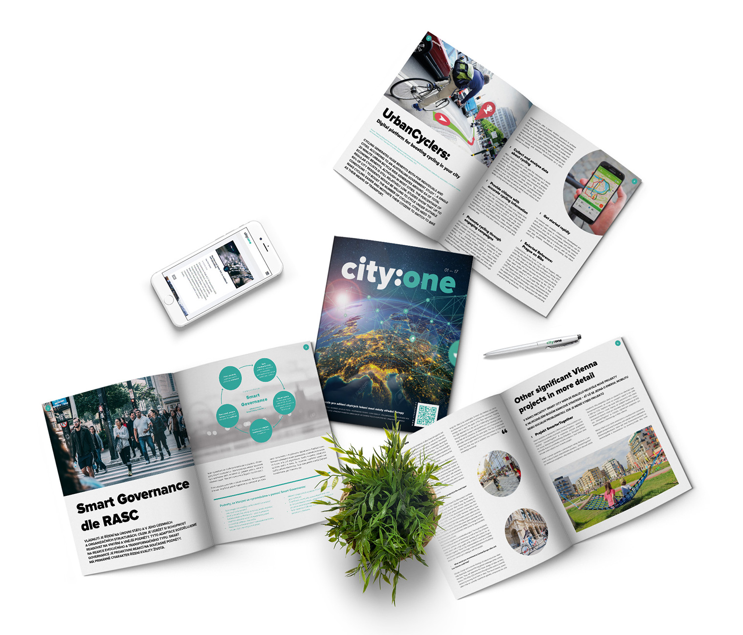Na začátku všeho stála klientova představa o vydávání časopisu s tématikou smart cities. Na nás bylo vytvořit kompletní návrh časopisu: celé jeho rozvržení, layout stránek i na nich použité konkrétní prvky. Avšak stála před námi výzva: klient už dopředu věděl, že podklady bude zvládat dodávat až na poslední chvíli. A my máme výzvy rádi – proto od roku 2017 pracujeme na každém čísle City:one.
