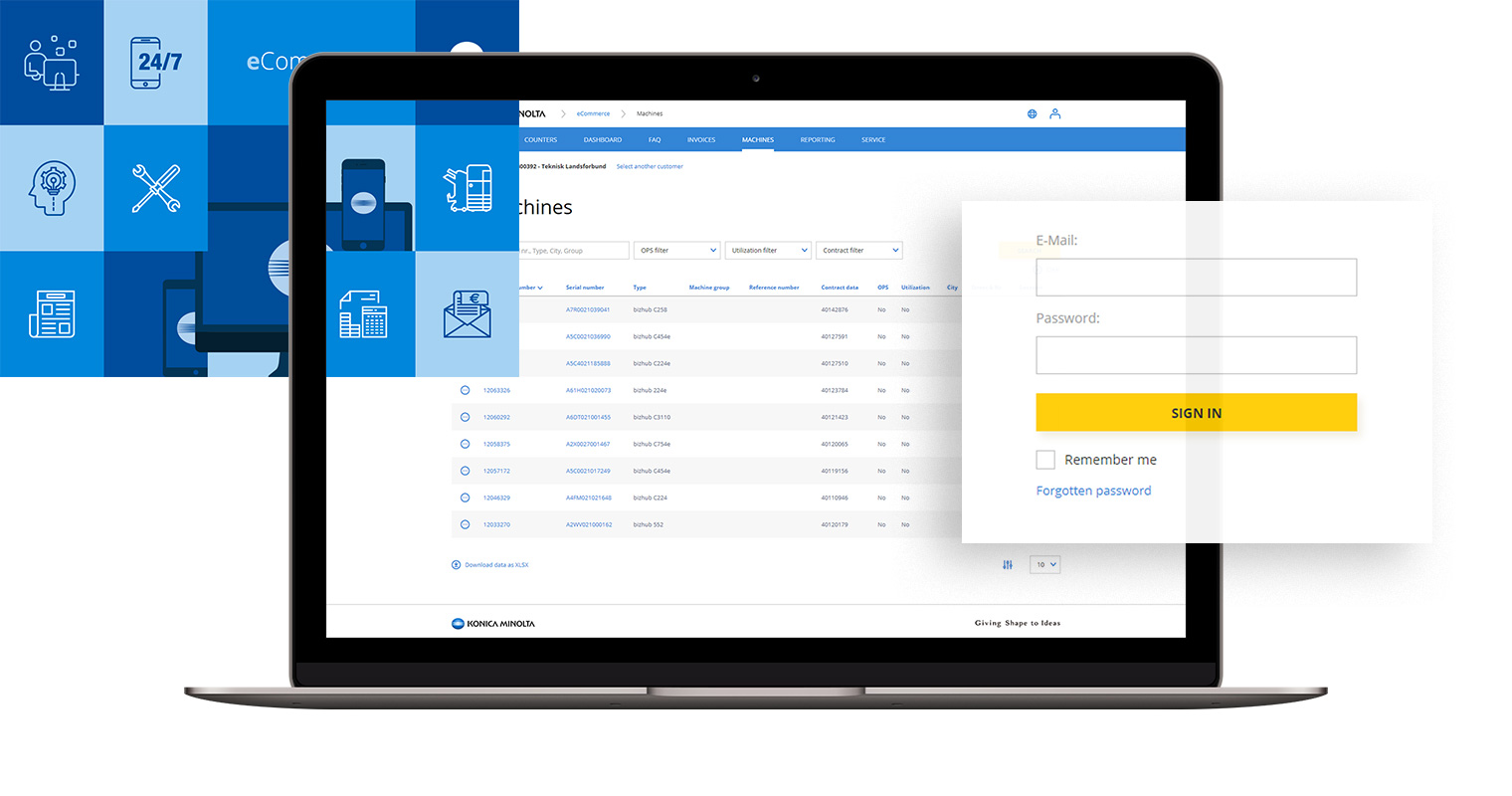 - Jednotný přístup ke všem portálům Konica Minolta v Evropě