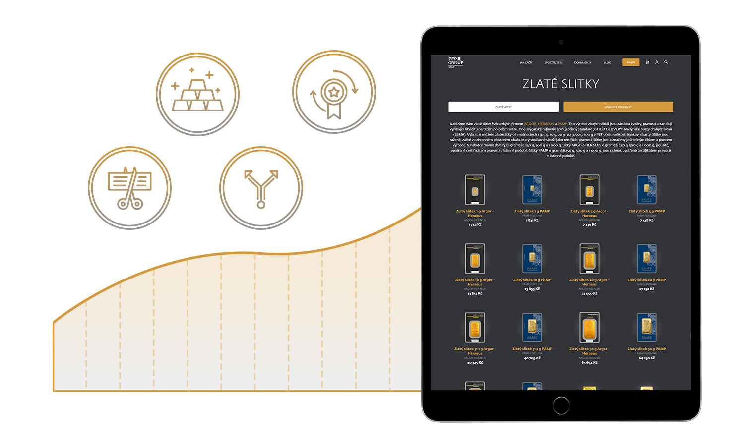 Společnost ZFP Group se zaměřuje na finanční vzdělávání, poskytování finančních produktů, prodej zlata, realit a energií. Cílem projektu pro člena skupiny ZFP Gold byla změna platformy a rozšíření možností nákupu a administrativy spojené s prodejem investičního zlata. Vytvořením platformy pro jeho prodej jsme navázali na dlouhodobou spolupráci s klientem, ze které později vzešla i platforma pro obchodníky známá jako ZFP Extranet.