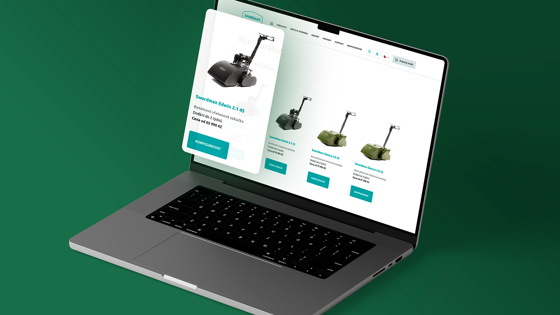 - Zákazníci si mohou svou vlastní vřetenovou sekačku sestavit v návodném konfigurátoru a následně na navržený kus vytvořit objednávku. Přes konfigurátor klient přijímá 8 z 10 objednávek sekaček.