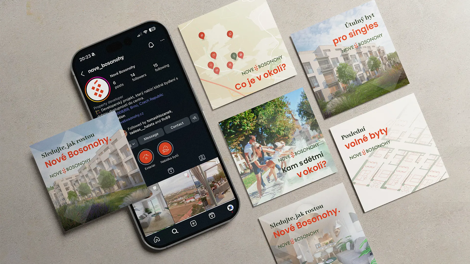 Na začátku spolupráce existoval pouze název: Nové Bosonohy. Naším úkolem bylo rozšířit povědomí o projektu mezi koncové zákazníky v co nejkratším čase. Komplexní prezentaci pro online i outdoor prostředí jsme zvládli připravit za několik týdnů. Čerpali jsme přitom z našich zkušeností s desítkami dalších developerských projektů.