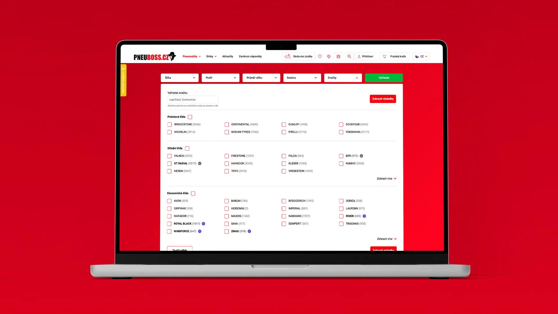 - Vylepšený filtr – zákazníkům jsme usnadnili výběr přesně specifikovaných pneumatik.