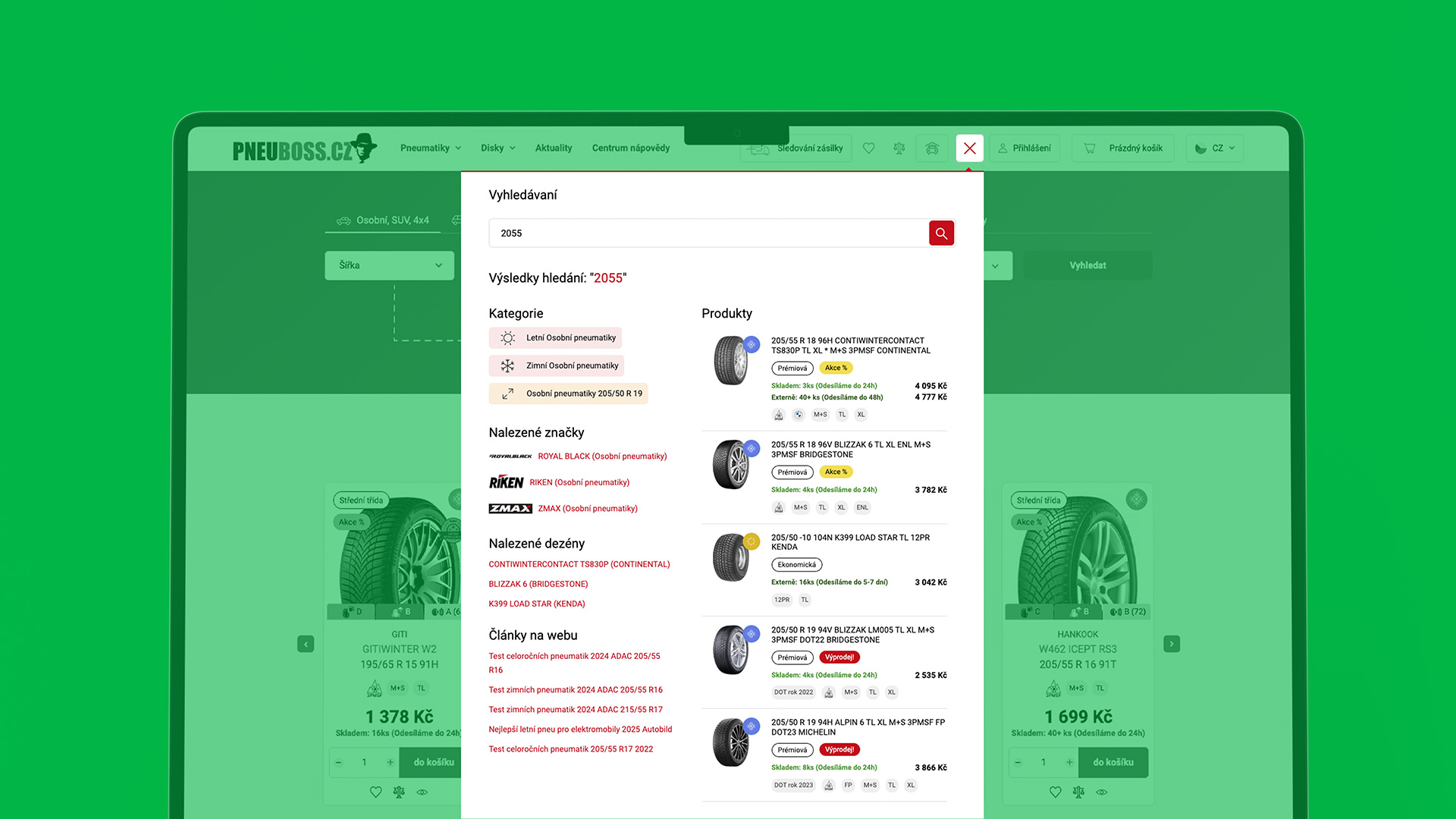 Pneuboss: e-shop se načte do půl vteřiny