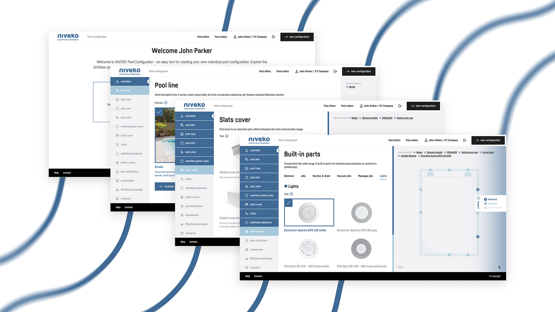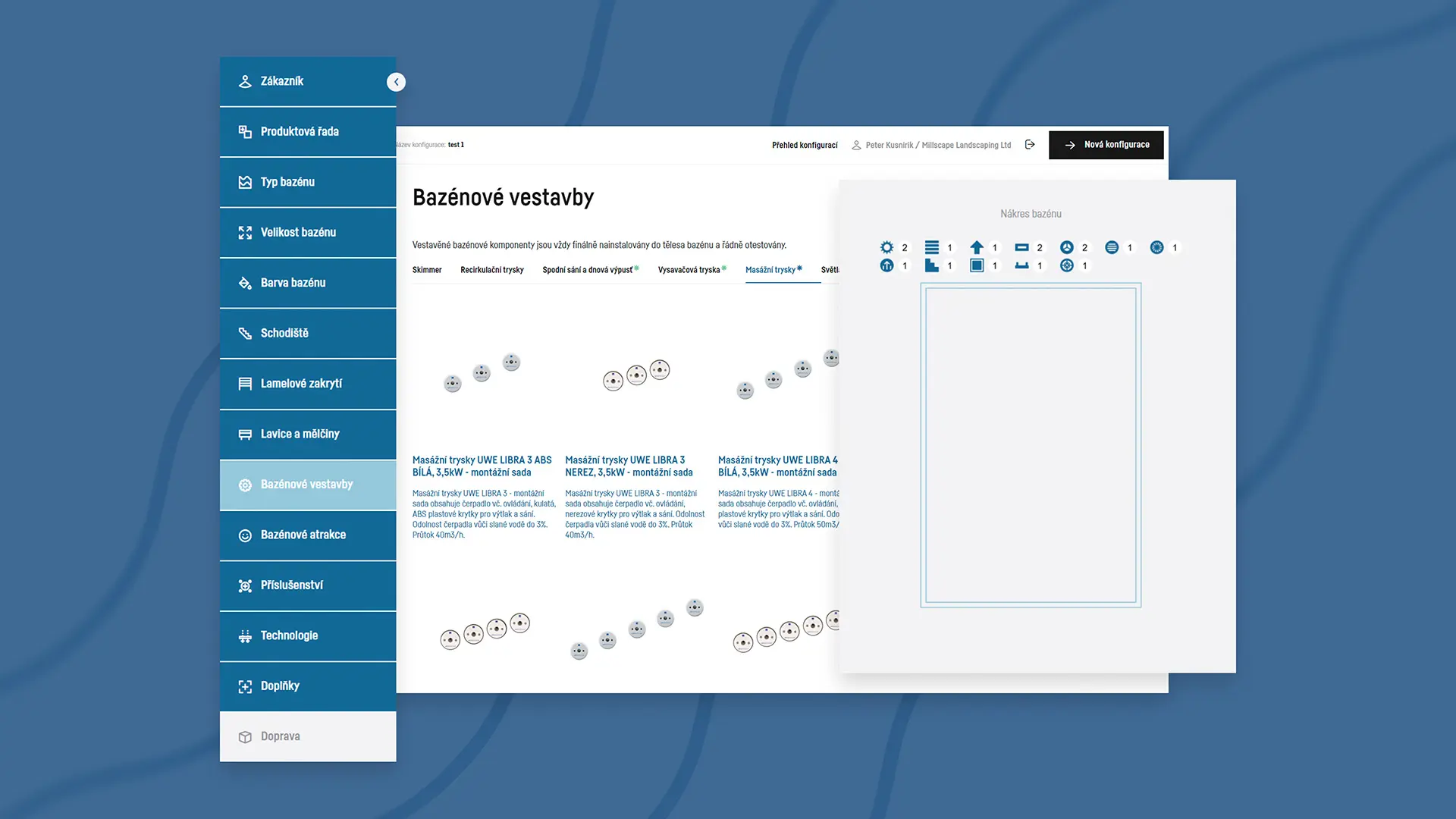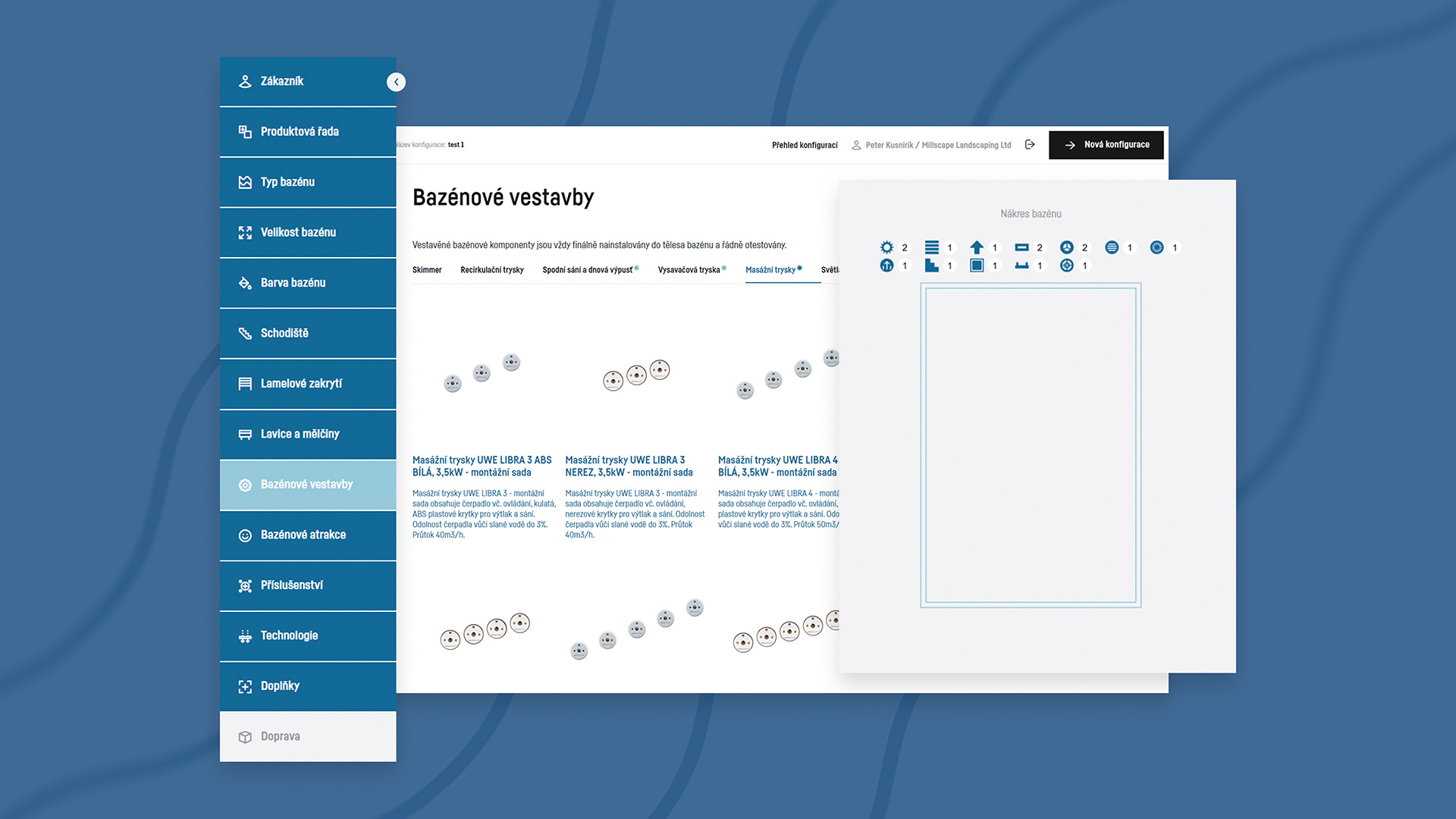 - V této zákaznické sekci jsme vytvořili nabušený konfigurátor, který vám kompletně zpracuje návrh bazénu do nejmenšího detailu.