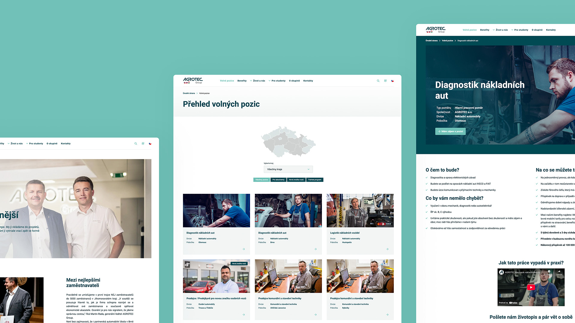 - Výsledkem je web, který nejen lépe prezentuje Agrotec, ale také podporuje nábor nových talentů.